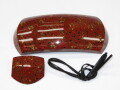 津軽三味線用の胴掛けセットになります。 展示されていた三味線に使用されており、実際にはめておりましたので多少のスレなどはございます。 天神の内側に傷がございます。 新しい皮ひもは付属としてお付けいたします。 状態がきになる方は店頭にてご確認くださいませ。