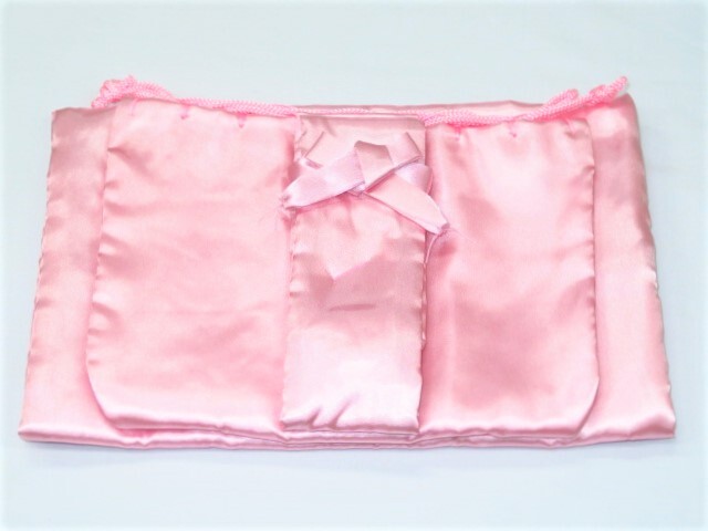 【当店限定・国内生産品】三味線用 三つ組袋 裏地ネル仕様 ピンク 細棹・中棹サイズ
