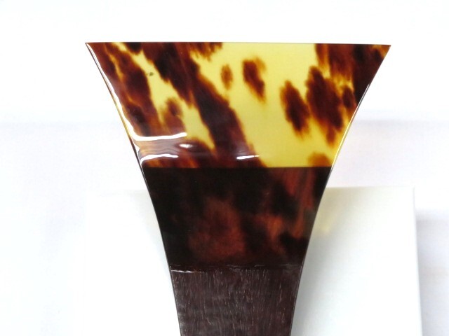 重さ…約189g平き…約9.3cm長さ…約17.5cm才尻横…約2.6cm才尻縦…約2.5cm硬さ…やや硬め1枚物の鼈甲になります。開きが小さめなので小回りを利かせて演奏したい方にお勧めです。紅木台の撥になります。綺麗に直してありますが小さく傷修理箇所がございます。硬さもあるので叩く方もご使用可能です。【新品参考価格…158000円】